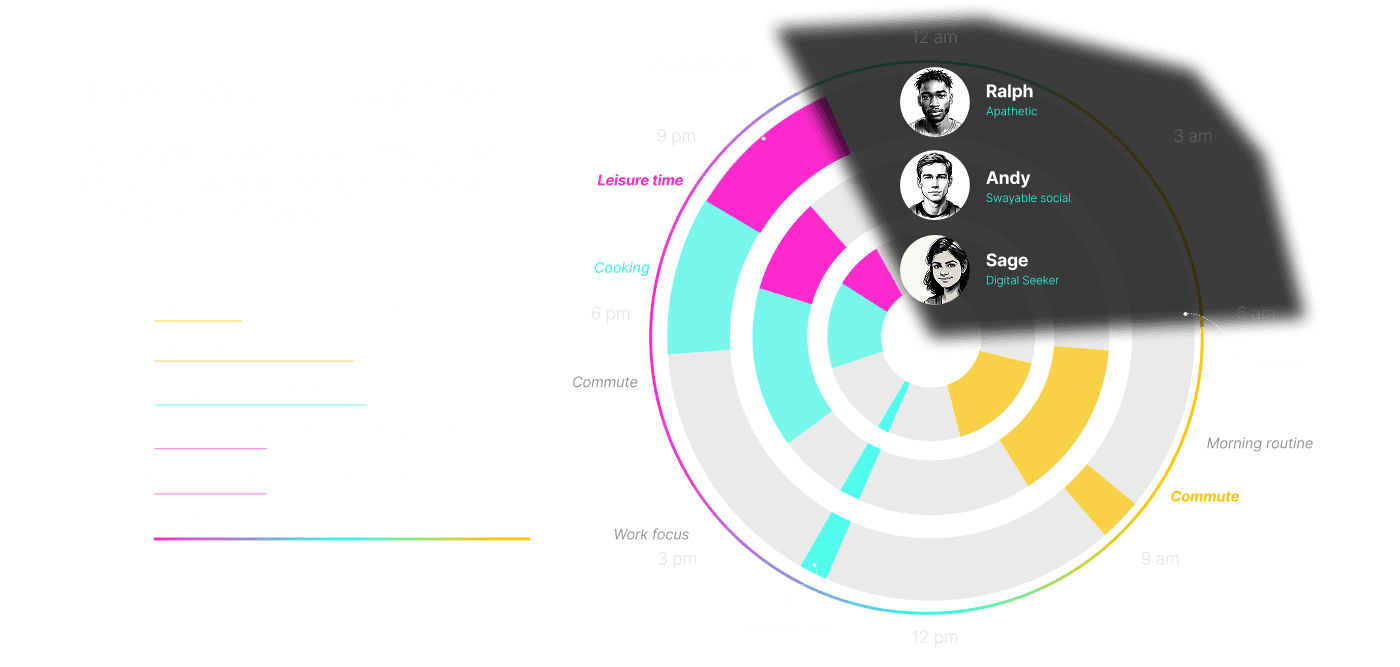 We also identified key moments of engagement — wake-up, commute, lunch break, and unwind — and designed our future-state app to meet users where they are.